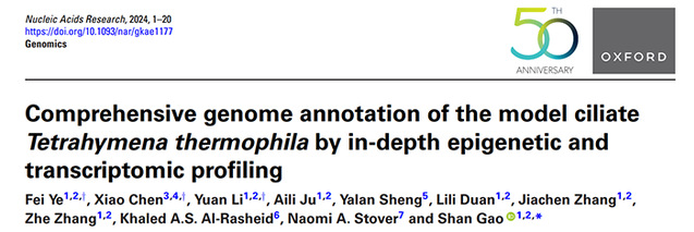 Tetrahymena thermophila is a unicellular model eukaryote, widely applied to foundational biological research. Recently, the research team led by Professor Gao Shan has optimized the genome annotation of the macronucleus of Tetrahymena thermophila by integrating large-scale transcriptomic and epigenetic data, and applying machine learning models, manual curation, and experimental validation. The research findings, titled Comprehensive genome annotation of the model ciliate Tetrahymena thermophila by in-depth epigenetic and transcriptomic profiling, were published online in Nucleic Acids Research on December 9, 2024.