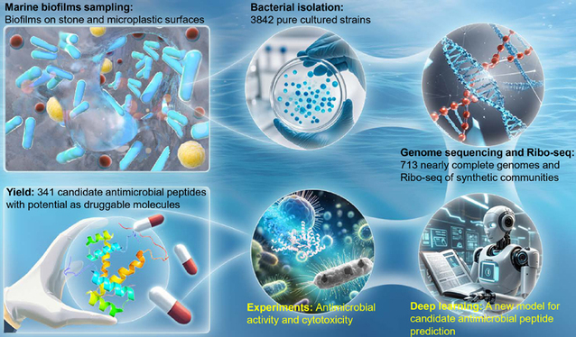 Recently, Professor Zhang Weipeng from the Institute of Marine Biodiversity and Evolution, and Associate Professor Ding Wei from the College of Marine Life Sciences published a research paper titled Bioprospecting of culturable marine biofilm bacteria for novel antimicrobial peptides in the journal iMeta. By using new methods, they explored the potential of marine biofilm bacteria to produce antimicrobial peptides, expanded the scope of antimicrobial peptide compounds, and provided a new perspective for the research and development of antibacterial drug-derived molecules.