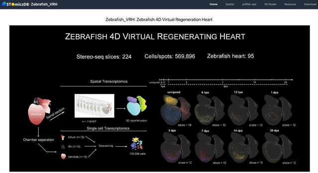 Given the significant differences in cardiac regenerative capacity across various species, this study identified evolutionarily conserved genes, such as ifrd1 and atp6ap2, which are associated with the functional divergence between regenerative and non-regenerative hearts in different species. These findings provide potential targets for research into clinical therapies for cardiovascular diseases. Finally, the research team utilized the omics data to construct a 3D transcriptomic atlas of the zebrafish heart and a 4D dynamic model of regeneration, which intuitively visualized the spatiotemporal evolution patterns of cell types and gene expression during the heart regeneration process. This model has been made globally accessible through the interactive database Zebrafish_VRH (https://db.cngb.org/stomics/zebrafish_VRH/), offering powerful tools and resource support for regenerative medicine research.