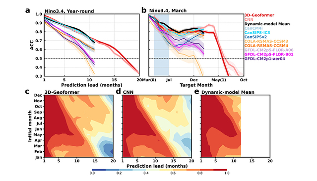 The team proposed two novel hybrid strategies. Strategy 1 involved averaging forecasts from the DL models and the multi-models, which led to significant improvements—forecast accuracy increased by 35.6%, 51.5%, and 50.5% compared to the individual DL models and the multi-models, respectively. Strategy 2 utilized DL models to select a subset of dynamical models whose initial conditions exhibit smaller errors. This approach boosted the medium- and long-term (over 8 months) forecast accuracy by 62.5%. Further analysis confirmed that both strategies yield statistically significant improvements across the year and are particularly effective in improving forecasting capability during the spring season.