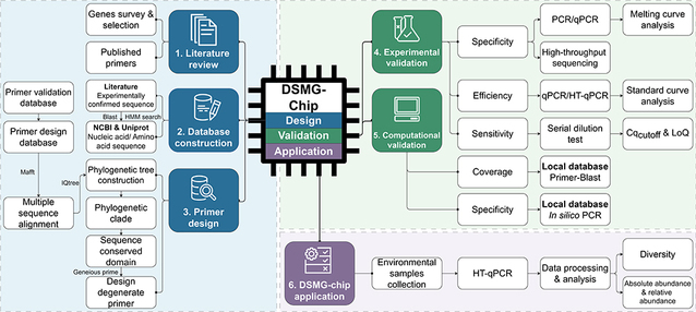 In addition, the research team also published another article entitled “DSMG-Chip: A High-Throughput Degenerate qPCR Chip for Profiling Microbial DMSP and Related Organic Sulfur Metabolic Genes in Diverse Environments” in Environmental Science & Technology. In this work, they developed a high-throughput qPCR (HT-qPCR) chip, the DSMG-chip, enabling the synchronous absolute quantification of 27 organosulfur metabolic genes. Researchers integrated 42 degenerate primer sets into the DSMG-chip and, together with intelligent database construction and phylogenetic analysis, established a complete technical framework from gene detection to environmental applications. Based on evaluations of specificity, sensitivity, and accuracy, the authors confirmed the reliability of the DSMG-chip on complex environmental samples. With multi-dimensional bioinformatic analyses, they further revealed the distribution patterns and ecological significance of organosulfur metabolic genes across the global ocean.