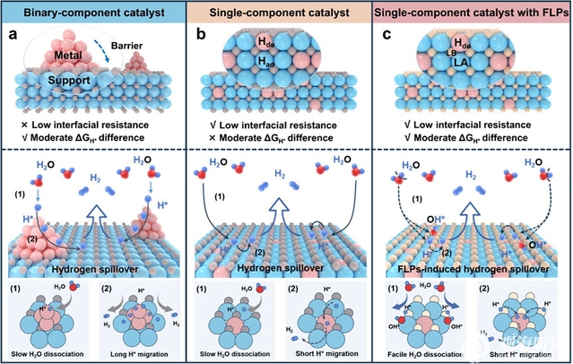 These findings deepen our understanding of the cooperative catalytic mechanisms and structure-performance relationships of frustrated Lewis pairs catalysts in efficient hydrogen evolution, providing key theoretical support and material foundations for the practical development of anion exchange membrane water electrolysis for hydrogen production.